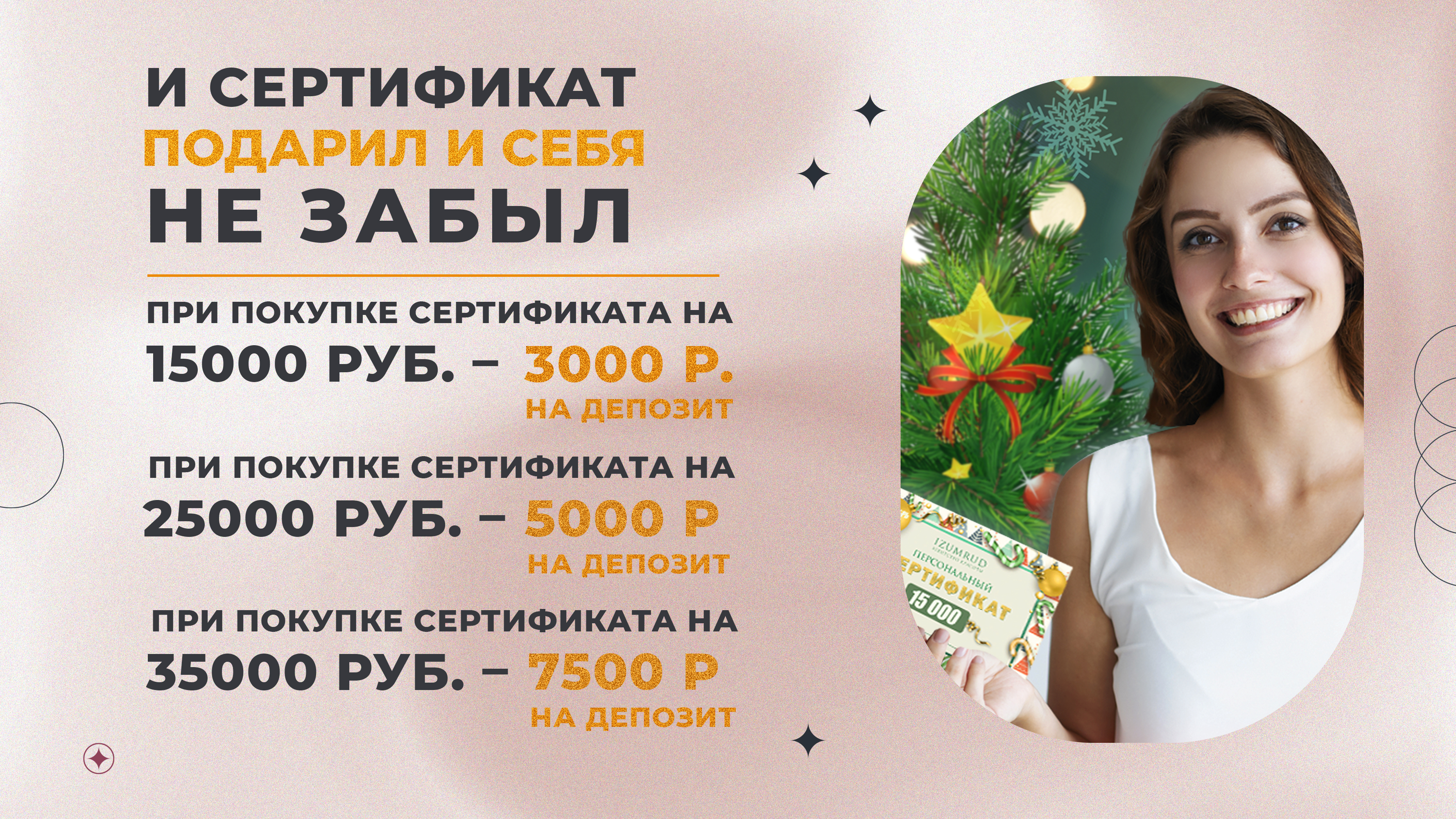 При покупке сертификата на 25000 руб. – 5000 р. на депозит