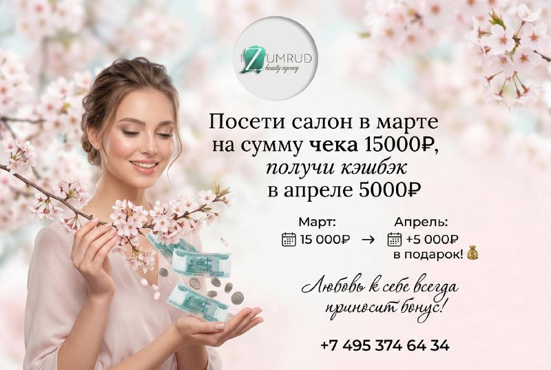 Посети салон в марте на сумму 15000 – получи кэшбэк в апреле 5000 на все услуги!